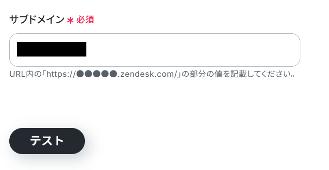 注釈を参考にサブドメインを手入力します。 設定が完了したら、「テスト」ボタンを押しましょう。