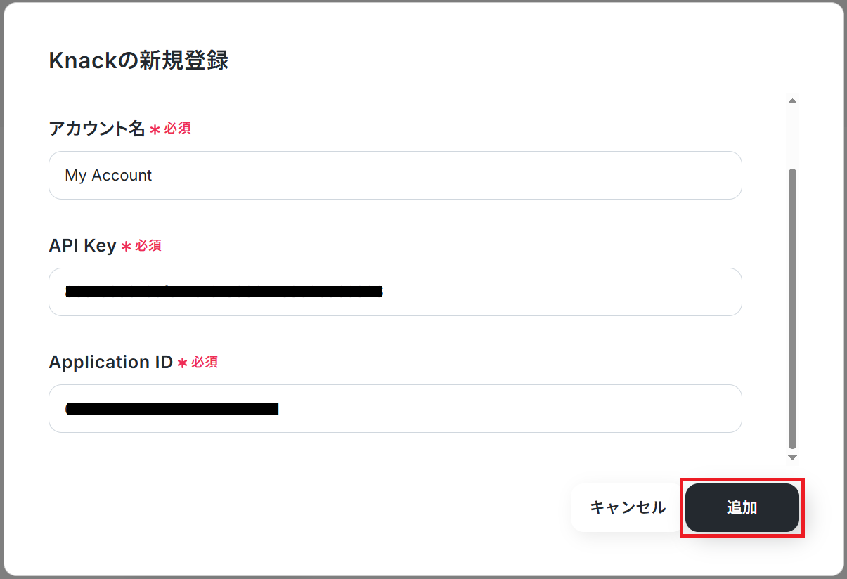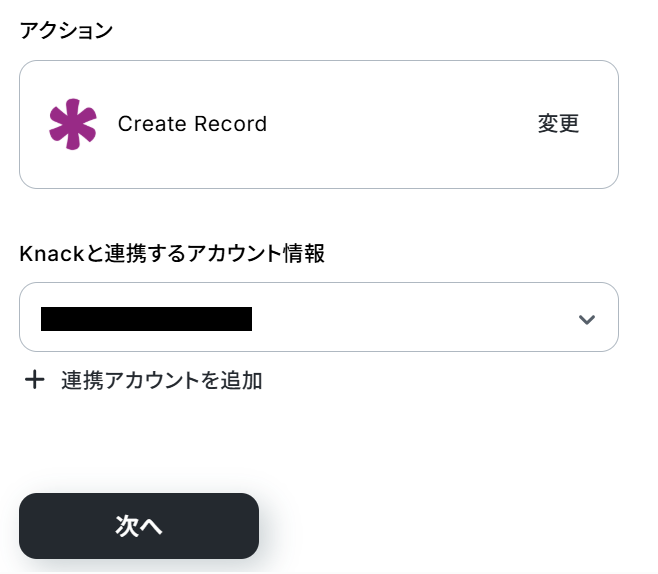 Knackと連携するアカウント情報を確認し、次のページに進んでください。
