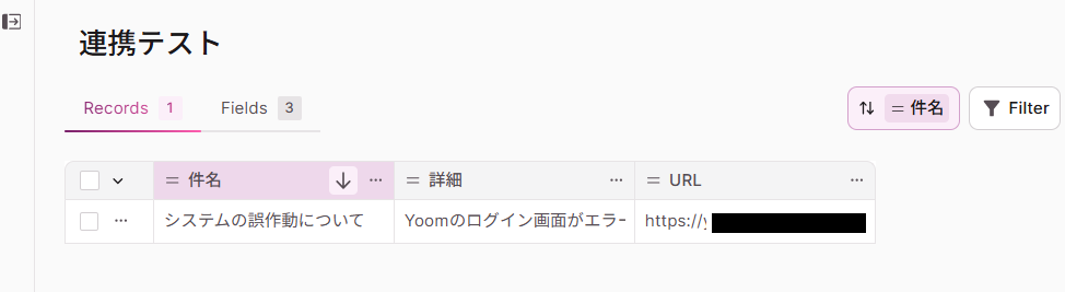 Knackに自動でレコードが追加されているので、確認しましょう。