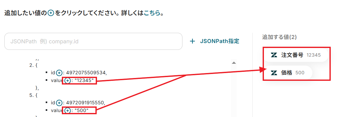 ちなみに取得した値は、「+取得する値を追加」ボタンで増やすこともできます。