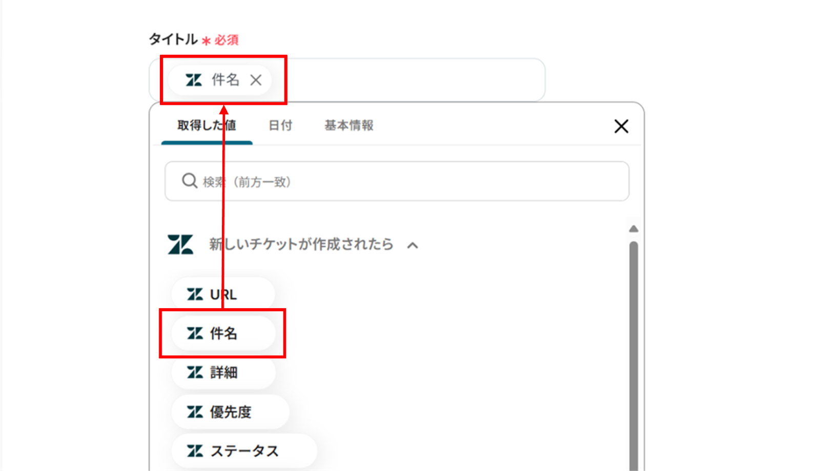 (3)タイトルに、先ほど取得した値を使って入力します。