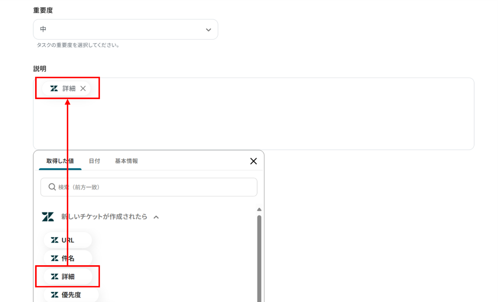 説明に取得した値を使うことで都度変更することなく、Zendeskの情報を引用できます!