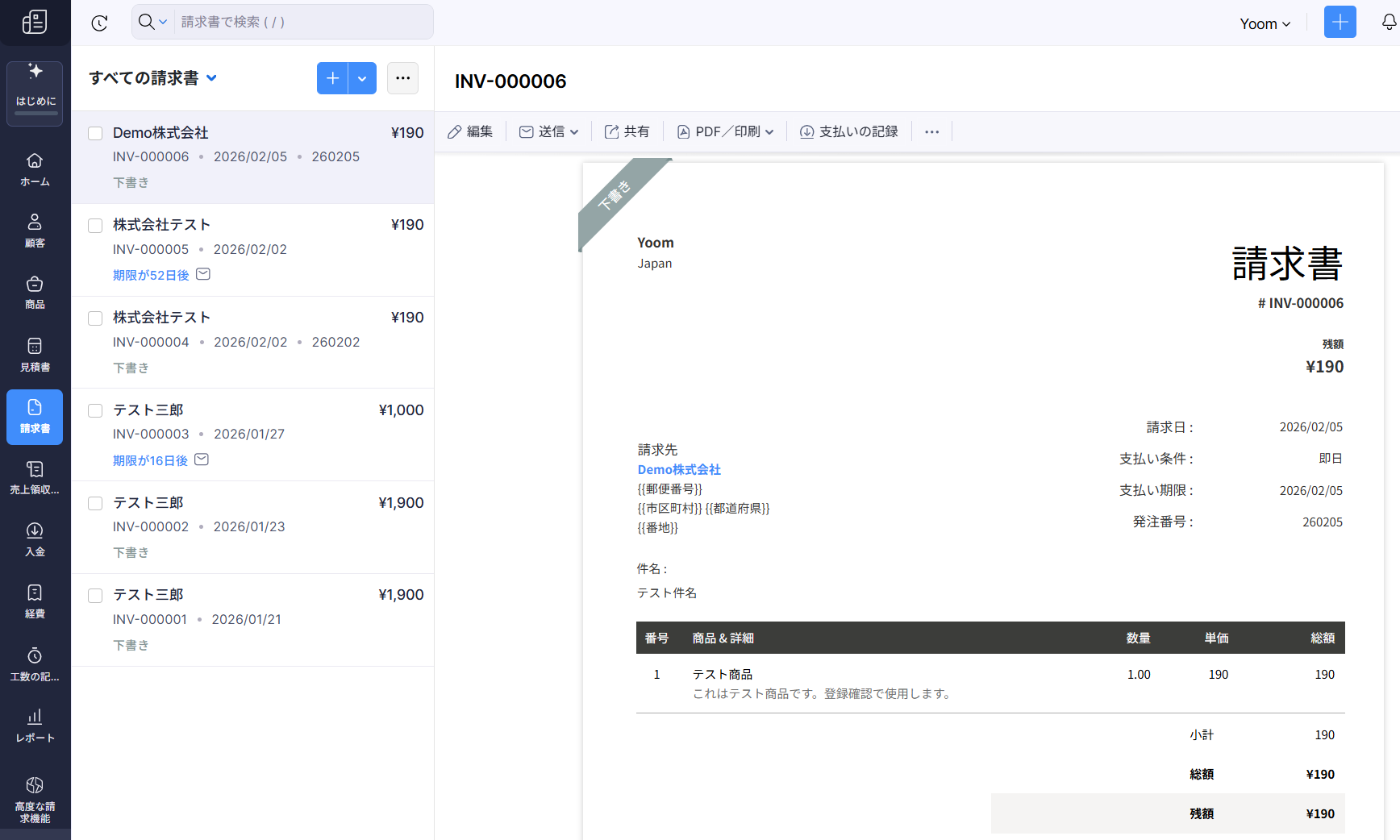 Zoho Invoiceでステータスが下書きの請求書をメールで送信する