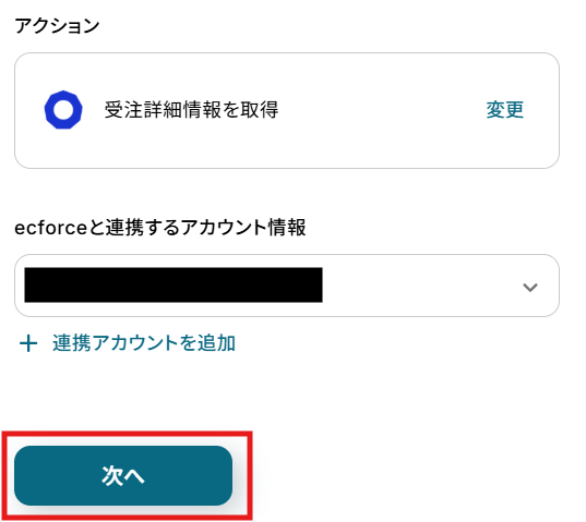 次に、ecforceで作成した受注の詳細情報を取得する設定を行います。