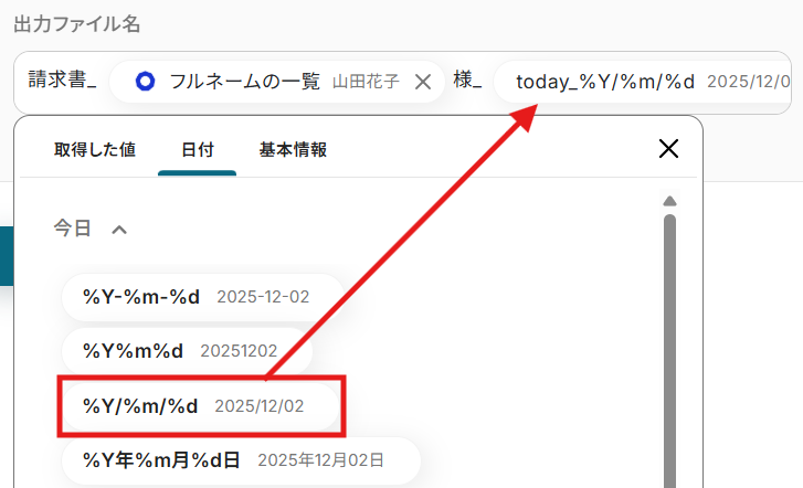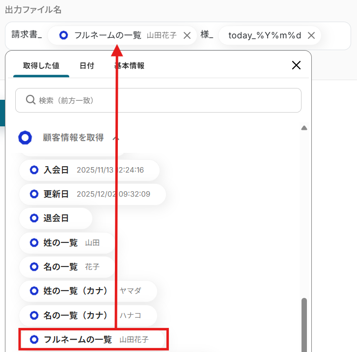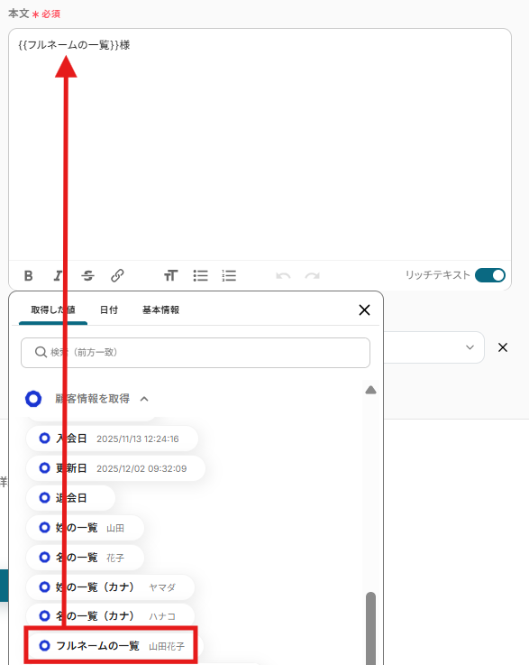 後続のオペレーション設定時の値として利用でき、フローボットを起動する度に変動する値として引用できます。