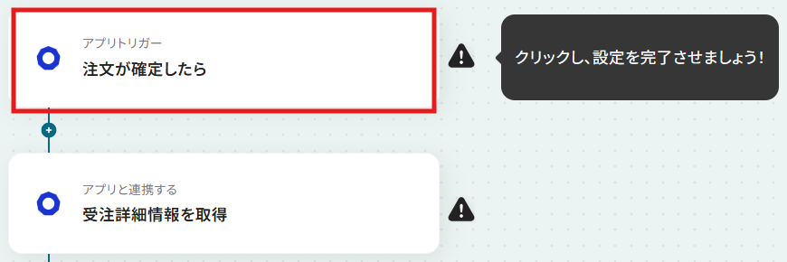 トリガーアクションは、「注文が確定したら」のままで次に進みましょう!