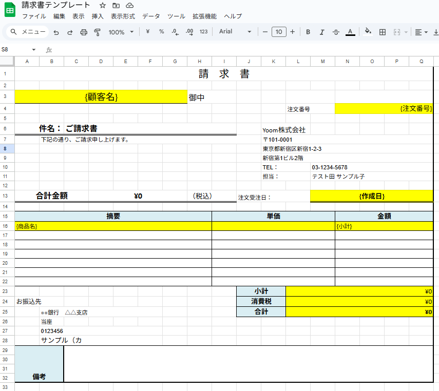 Yoomにはecforceの受注情報をもとに請求書発行などの業務を自動化するテンプレートが用意されています。
