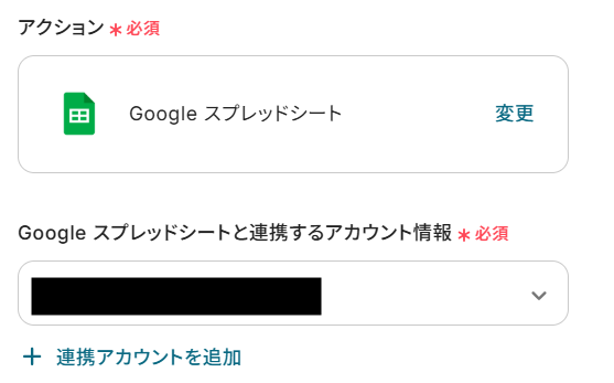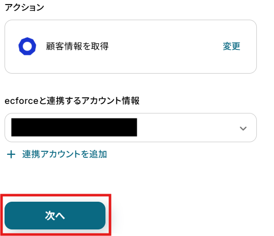 アカウント情報と書かれた項目にはステップ1でマイアプリ連携した際のアカウント情報が記載されています。
