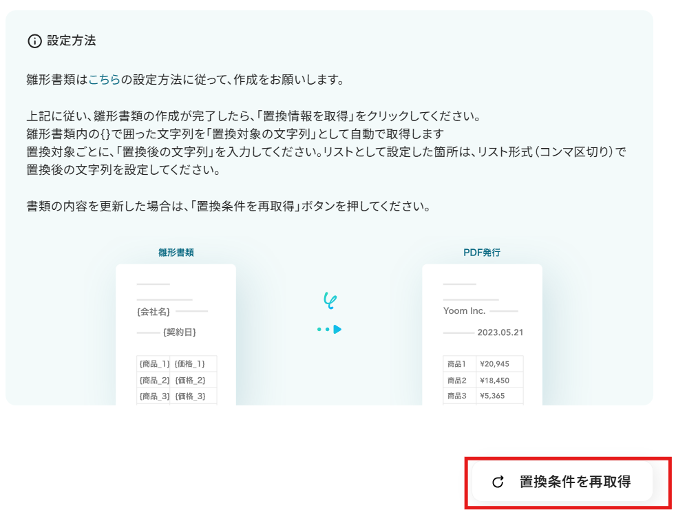連携するフォーマットを変更する場合は、テンプレート設定の修正が必要です。