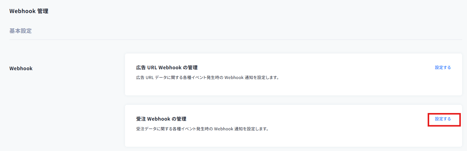 「受注 Webhookの管理」の「設定する」をクリックしてください。