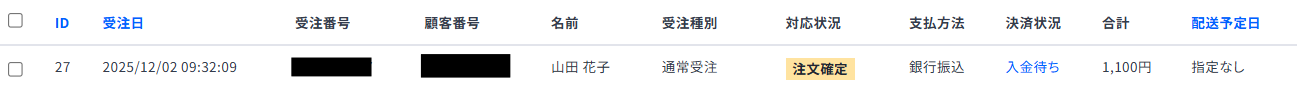 Webhookの情報を保存したら、次にテスト可能な顧客に受注を作成しましょう!