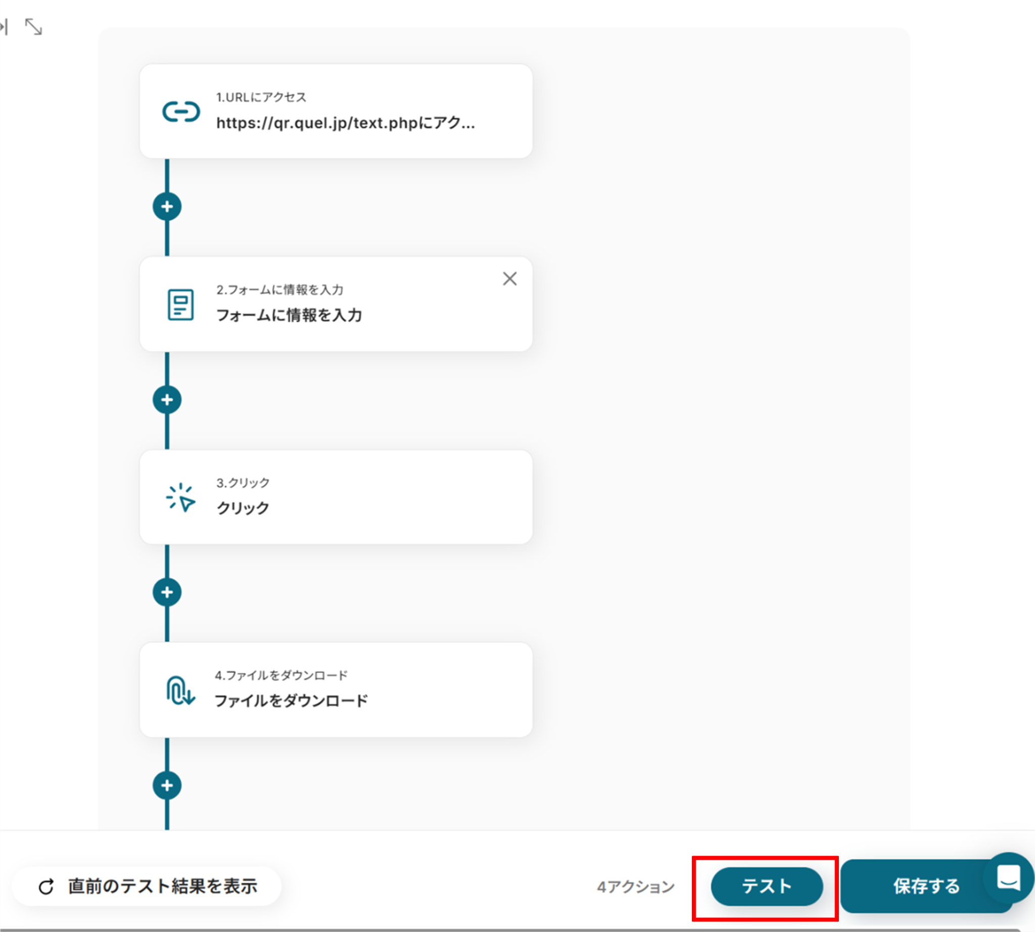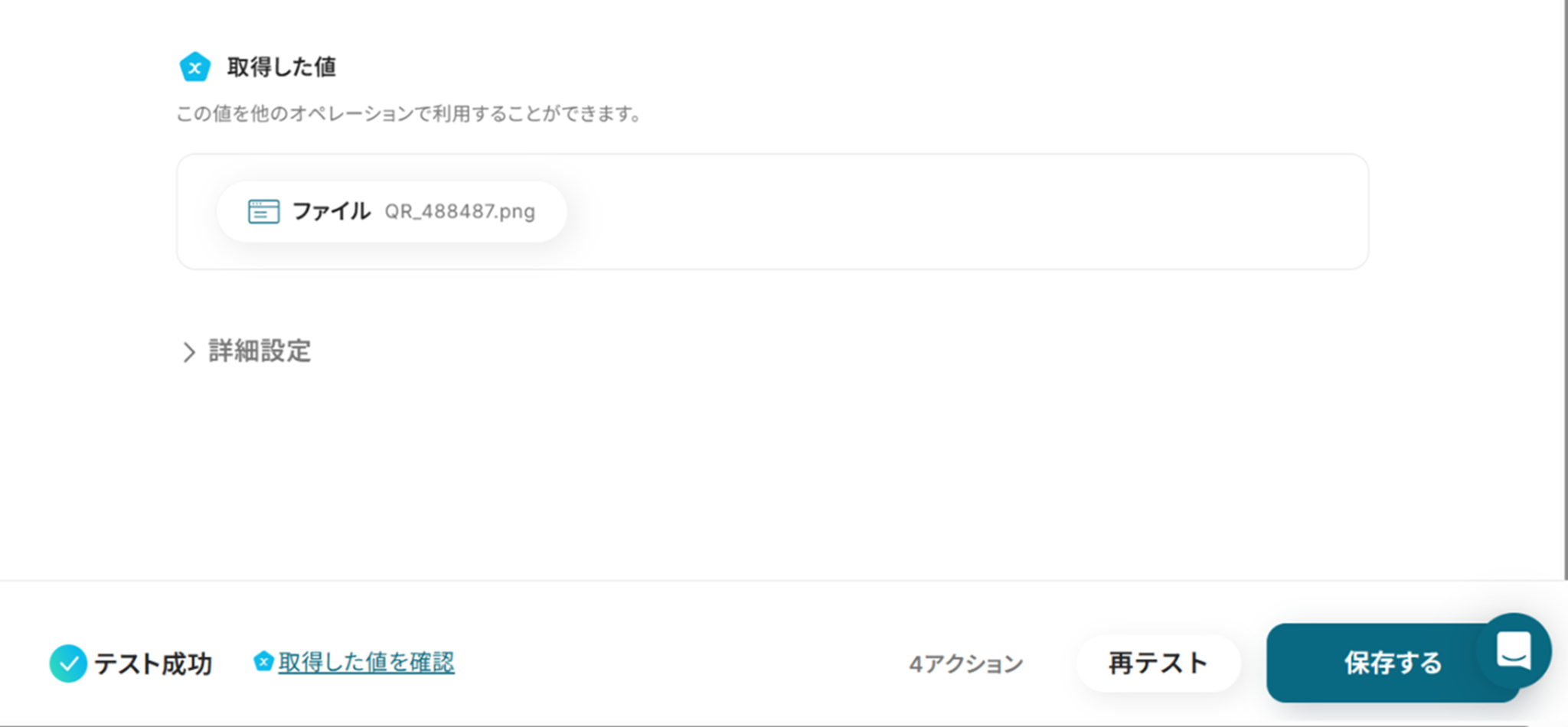 テストに成功すると、生成されたQRコードがダウンロードできるようになりました!