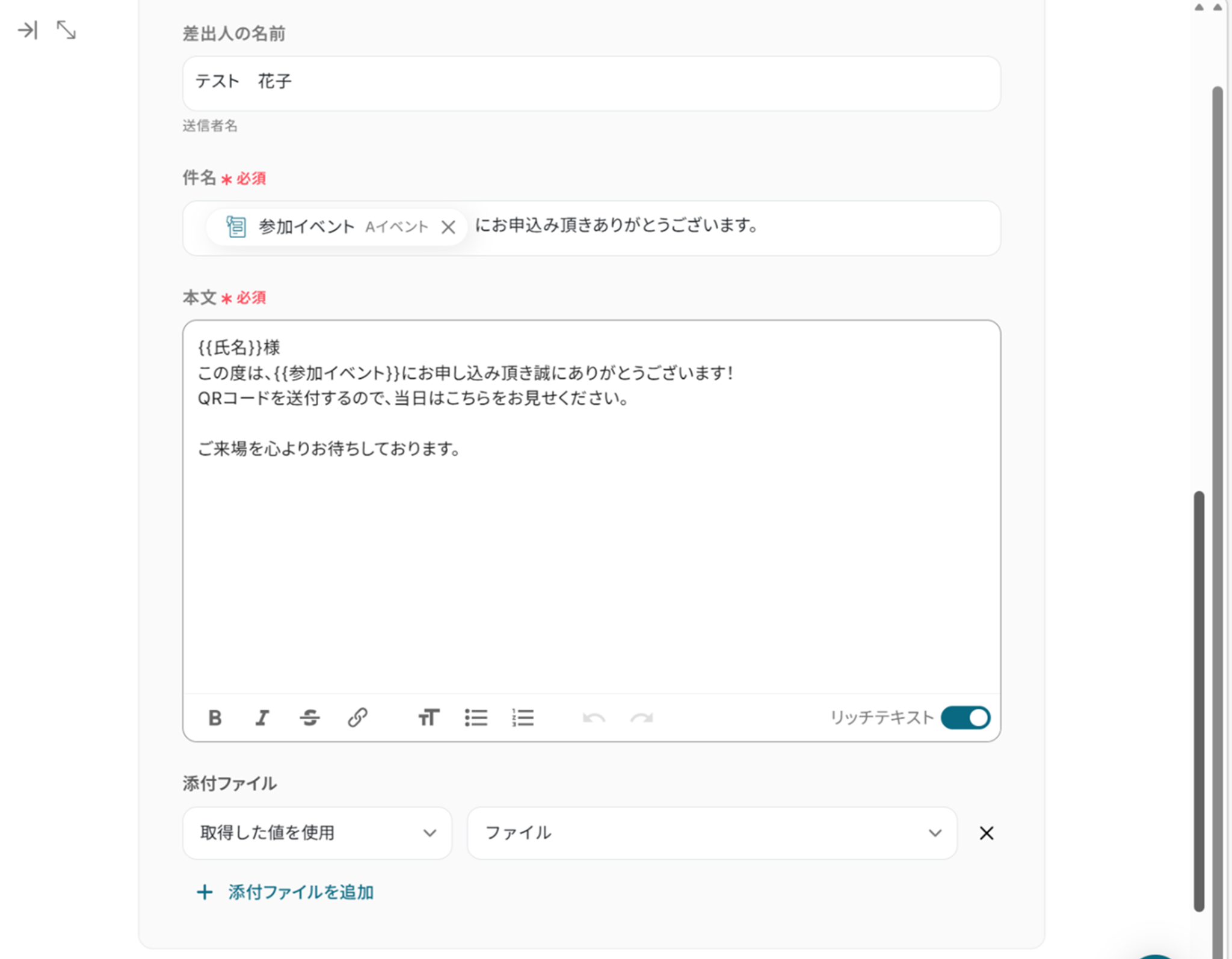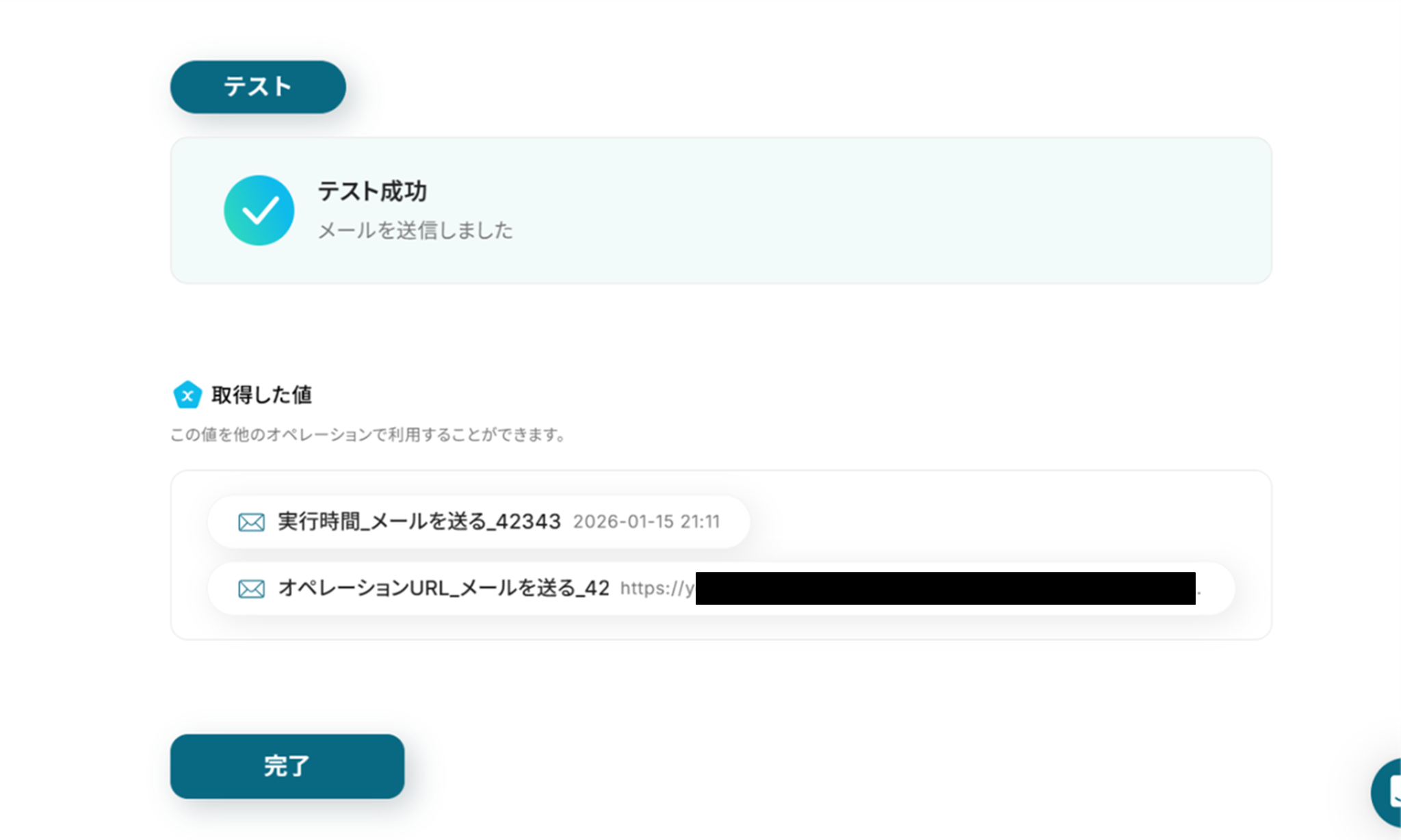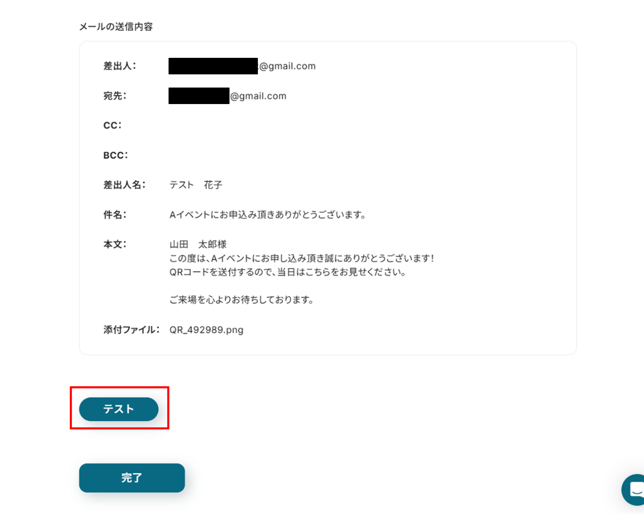テストした際に実際にメールが送信されるので、ご自身で確認できるメールアドレスを記入しておくことをおすすめします!