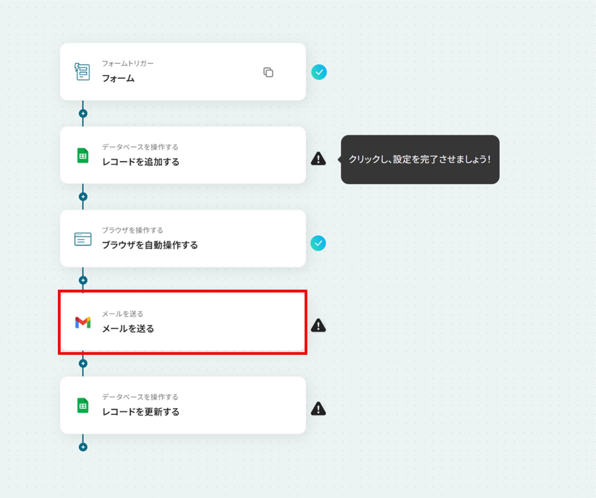 (2)上から順番に実行するアクションをクリックして設定していきます。