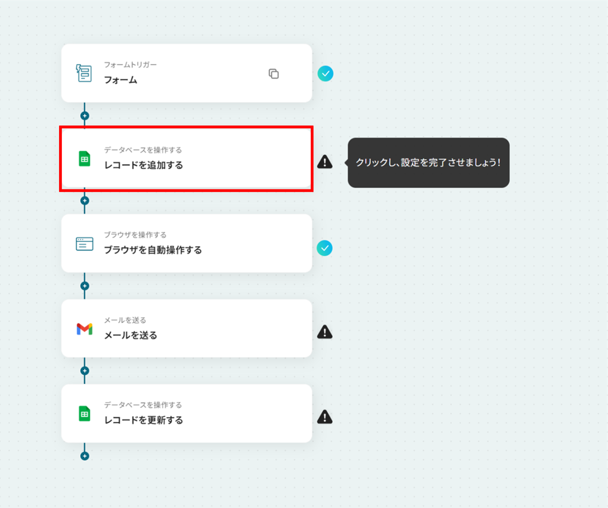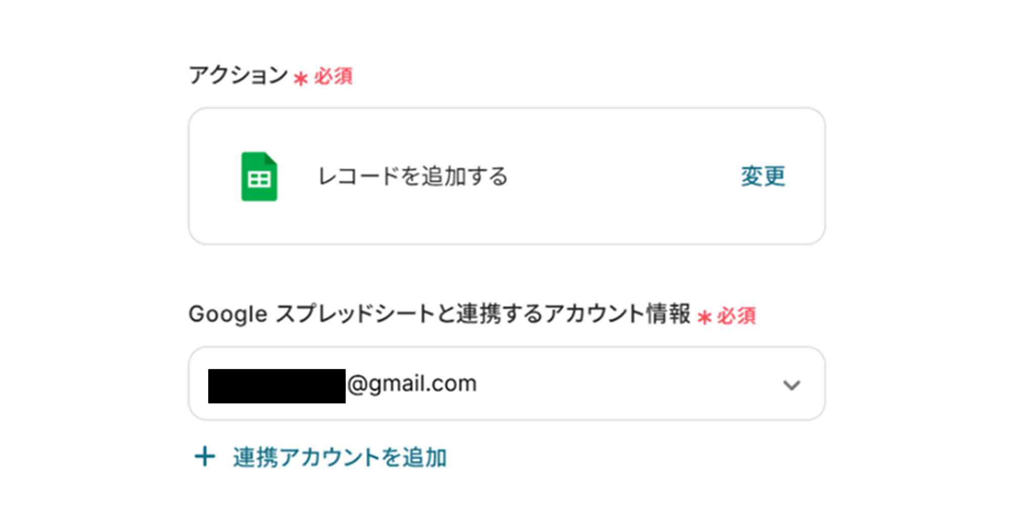 (2)次にGoogle スプレッドシートと連携して指定のシートにレコードを追加します!