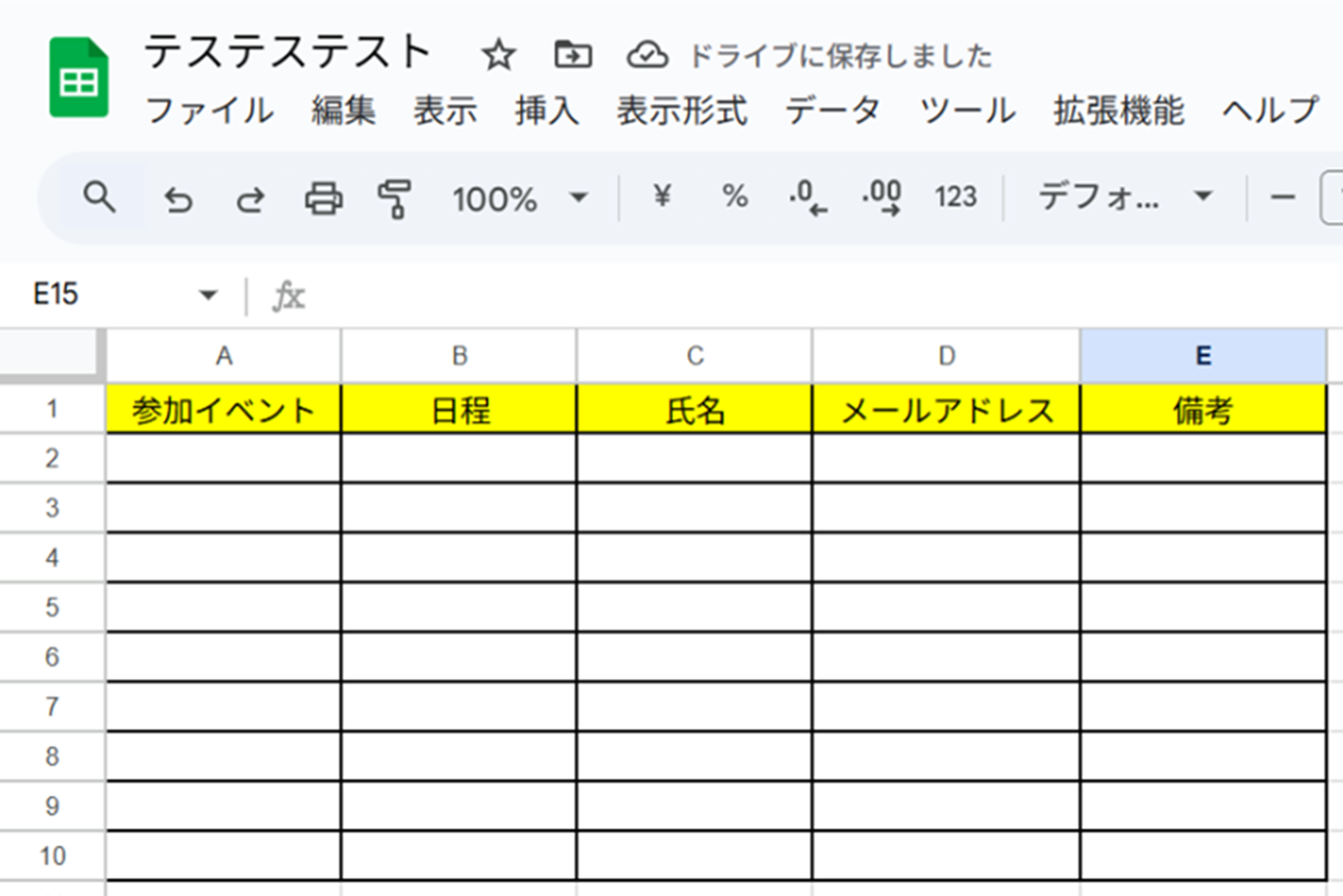 (1)先にGoogle スプレッドシートにテスト用のデータを作成しましょう!