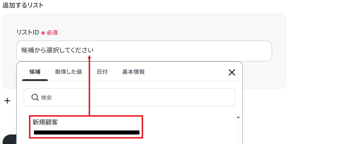 追加するリストのリストIDを候補から選択しテストしましょう。