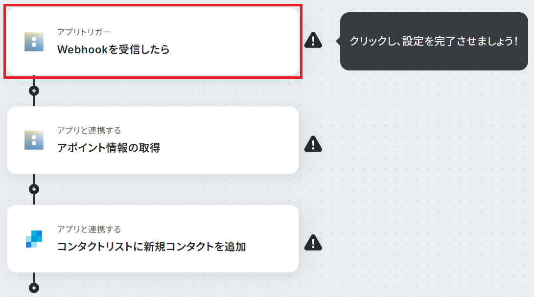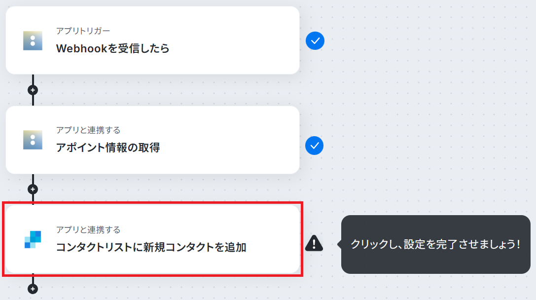 今回はAcuity Schedulingで新規予約が入ったら、SendGridのコンタクトリストに追加するフローを作成していきます!作成の流れは大きく分けて以下です。