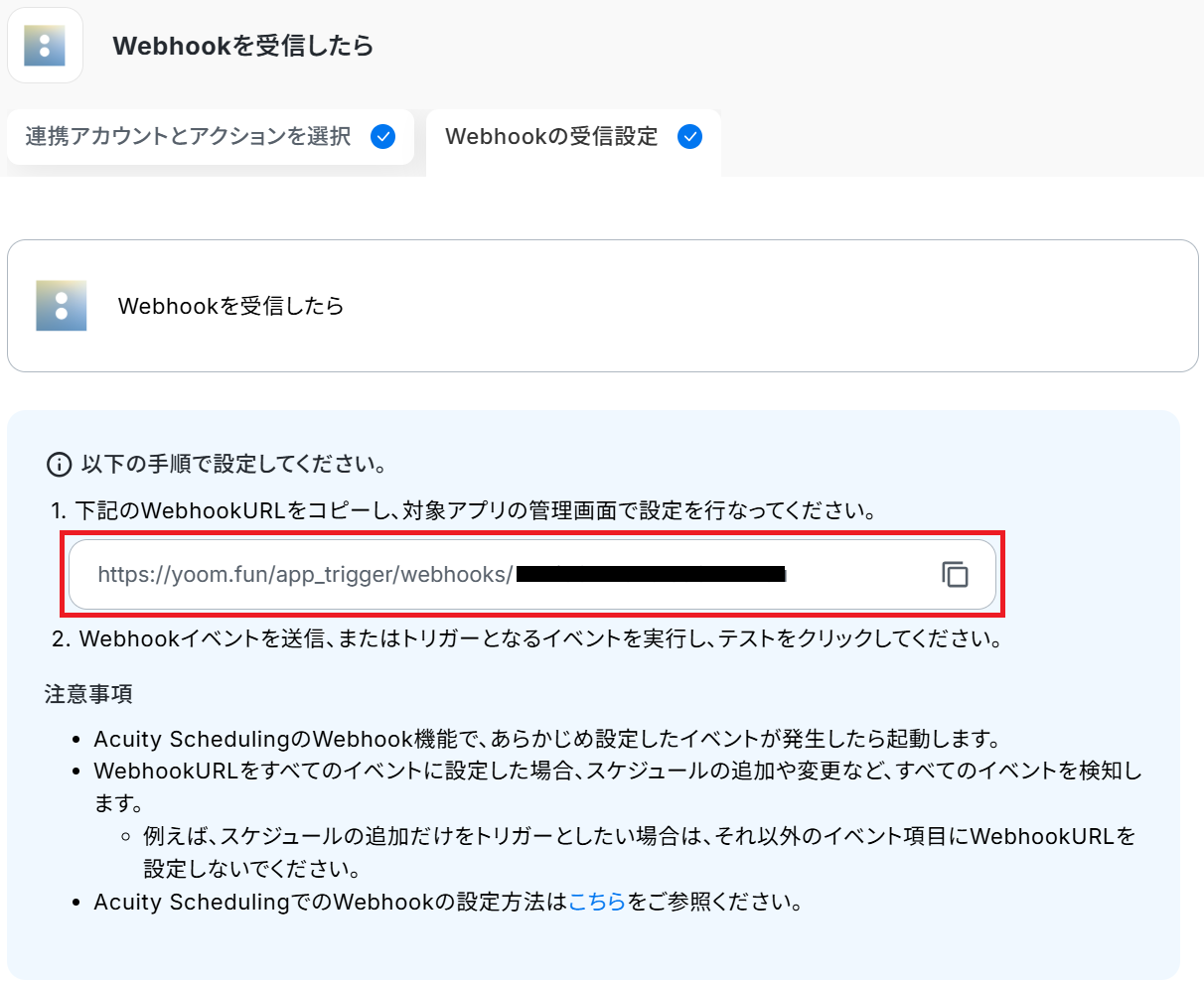Acuity API Webhooksを参考にWebhook設定を行ってください。