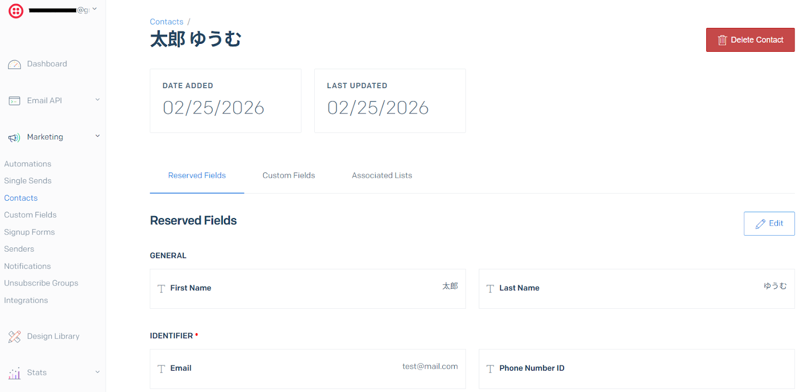 先ほど取得した予約情報をもとに、SendGridでコンタクトを作成します。