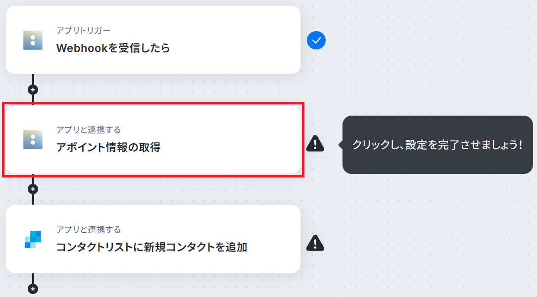 先ほど検知した予約の詳細情報を取得します。「アポイント情報の取得」をクリックしましょう。