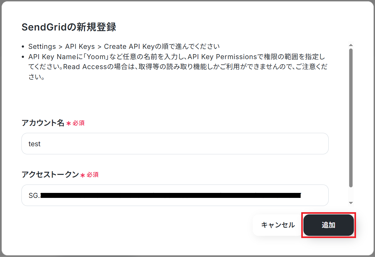 SendGridとYoomのマイアプリ登録