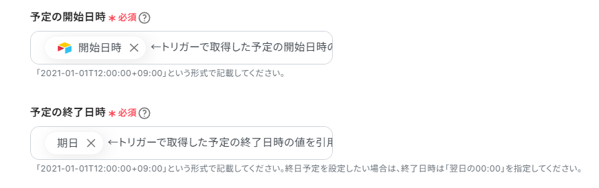 直接入力した固定値とともに、Googleカレンダーから取得した値を用いると分かりやすいです。