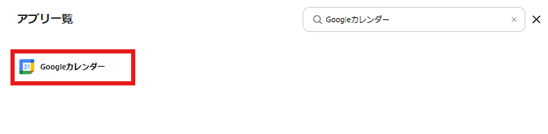 検索窓にGoogleカレンダーと入力し、表示された候補をクリックします。