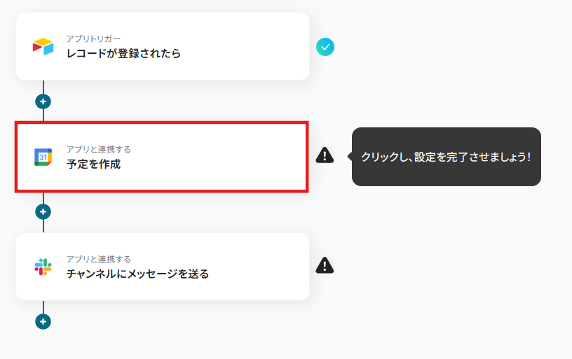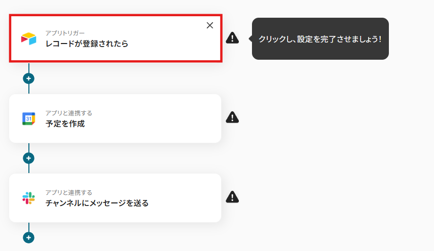 それではここから代表的な例として、Airtableでレコードが登録された際に、Googleカレンダーに予定を作成してSlackで通知するフローを解説していきます!