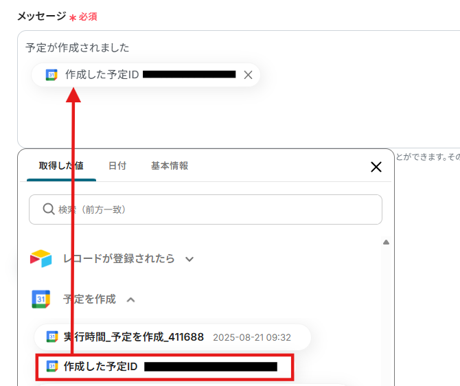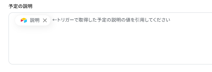 予定の説明に関してもAirtableから取得した値を使用し入力しました。
