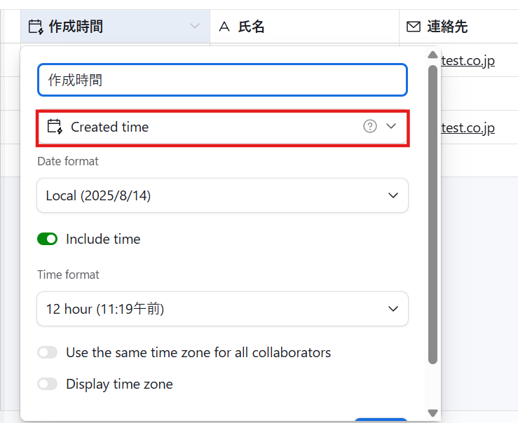実際にレコードを作成し、「テスト」をクリックしましょう。