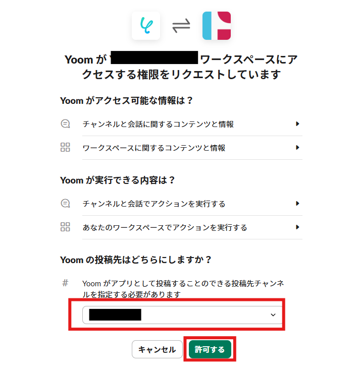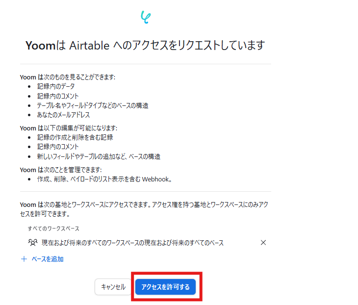 連携したいワークスペースをクリックした後、「アクセスを許可する」をクリックしましょう。
