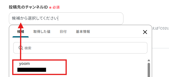 投稿先のチャンネルは以下のように表示される候補から選択しましょう。