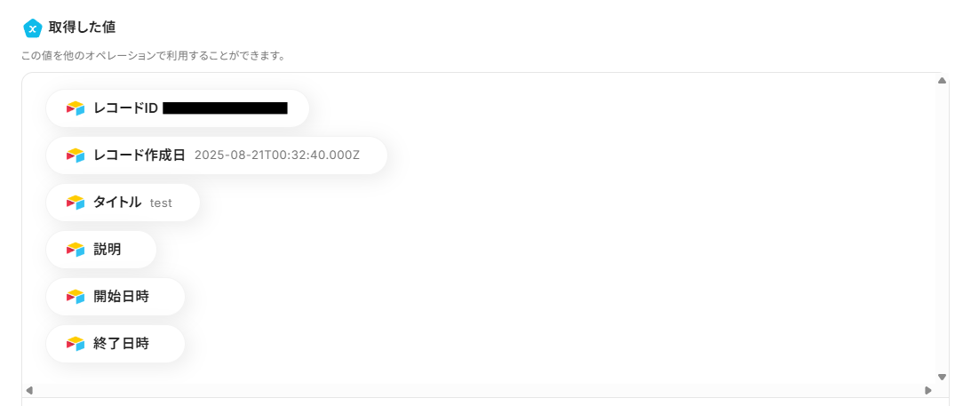 この後、この取得した値の内容を入力に使用することができます。