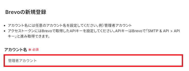 「アカウント名」と「アクセストークン」を、設定していきます。
