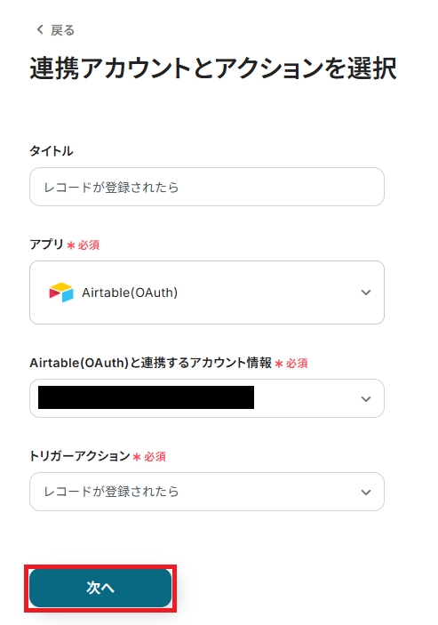Airtableと連携するアカウントに間違いがないかを確認し、「次へ」をクリックしましょう。