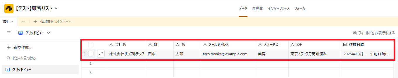 実際にレコードを登録する必要があるので、Airtableで作成してみましょう。