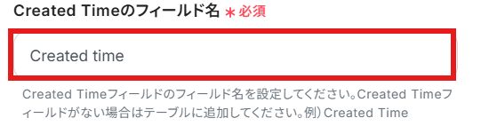今回は例としてテーブルで「Created time」と設定していたので、以下のように設定しました。
