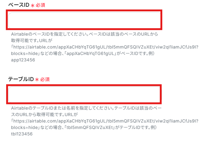 「ベースID」と「テーブルID」を注釈に沿って設定しましょう。