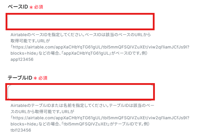 「ベースID」と「テーブルID」を注釈に沿って設定しましょう。