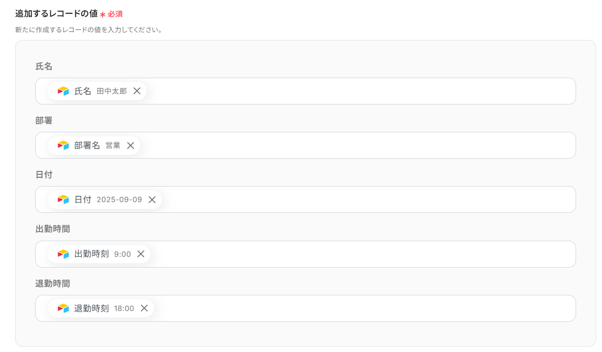 この仕組みにより、手作業でのデータ入力の手間をなくし、転記ミスや漏れを防ぎながら、勤怠情報を管理できます。