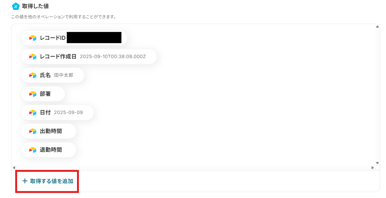 任意の値が「取得した値」に反映されていない場合は手動で取得する必要があります。