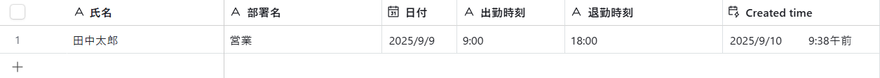 今回はフィールドに「Created time」が設定されていることが必須になっているので、忘れずに作成しておいてくださいね。