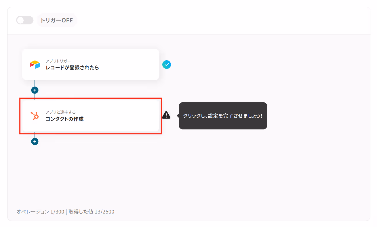 それでは、取得したレコード情報を用いてHubSpotにコンタクトを作成しましょう。