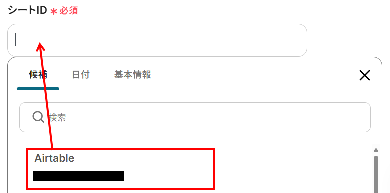 - シートID:入力欄をクリックし、候補から選択しましょう。