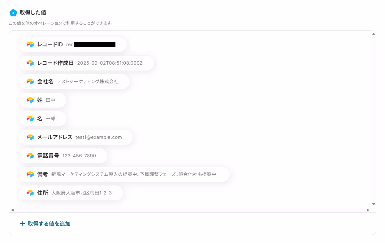取得した値は、以降のアクションで変数(フローが稼働する度に変わる値)として使用できるようになります。