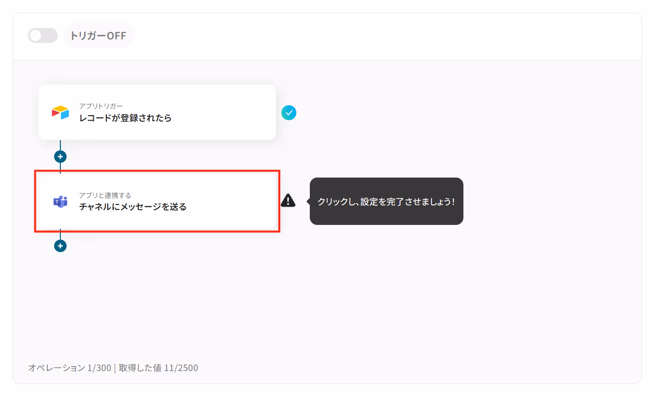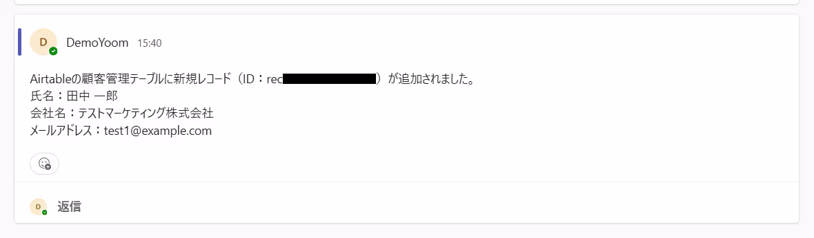それでは、レコード作成を通知するメッセージをMicrosoft Teamsに投稿しましょう。
