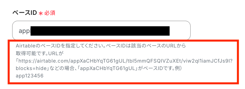 次に「ベースID」を赤枠の注記を確認しながら入力します。