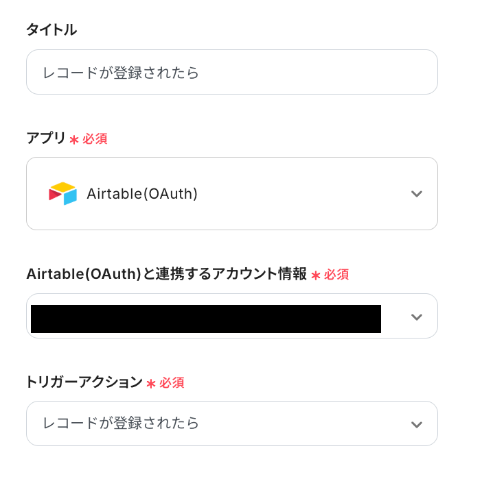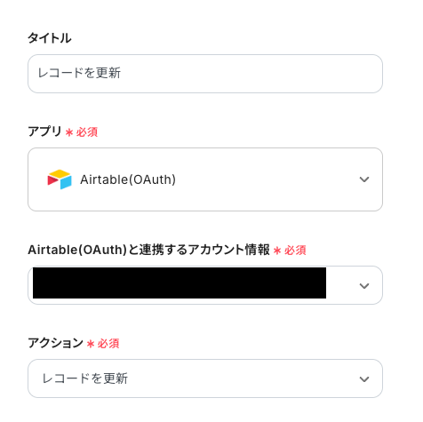 「Airtableと連携するアカウント情報」:ステップ1で連携したアカウントが表示されていることを確認します。