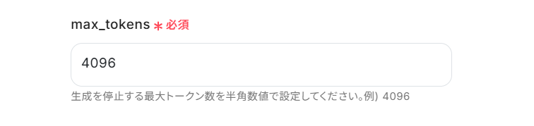 「max_tokens」は直接入力します。